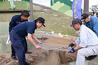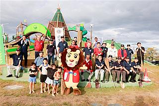 当クラブのマスコットキャラクター「ロアー君」も登場し、公園で遊んでいた子ども達(約21名)と一緒に清掃活動を行いました。 遊具を大切にするなど学びの機会となったと思います。