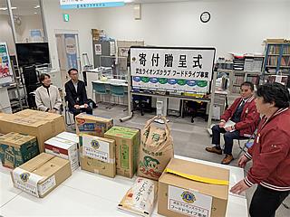 11/25~12/4 提供食品を募集 ➡ 12/6例会後に賞味期限の確認をしながら仕分け・梱包 ➡ 12/13 NPO法人のっぽえちぜんにて寄贈式。※食品段段ボール16箱・お米36㎏