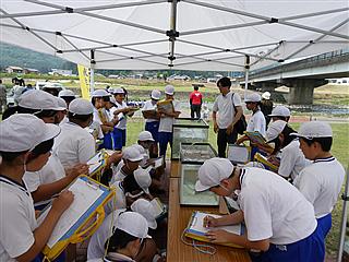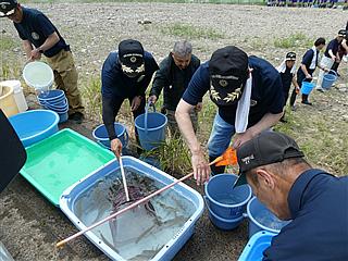 魚を見て「きれいな魚ー!」「かっこいい!」「こんな魚が川にいるんだ〜」など生徒の感想が聞こえ、「いってらっしゃい」 「元気に大きくなって帰ってきてね〜」など生徒の想いが込められた歓声があちこちであがりました。事業終了後、児童の感想分が当クラブに寄せられ、 児童にとっては貴重な経験となり、新たな発見があったことを確信できました。