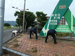 ガバナー公式訪問事業として設置した交通安全標識モニュメント周辺を整備(草取り)を行いました。